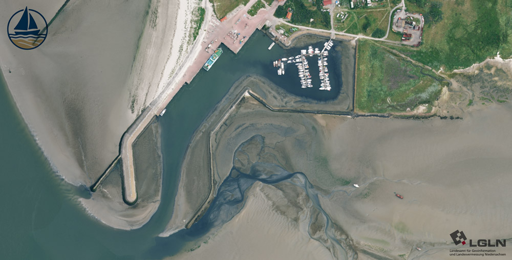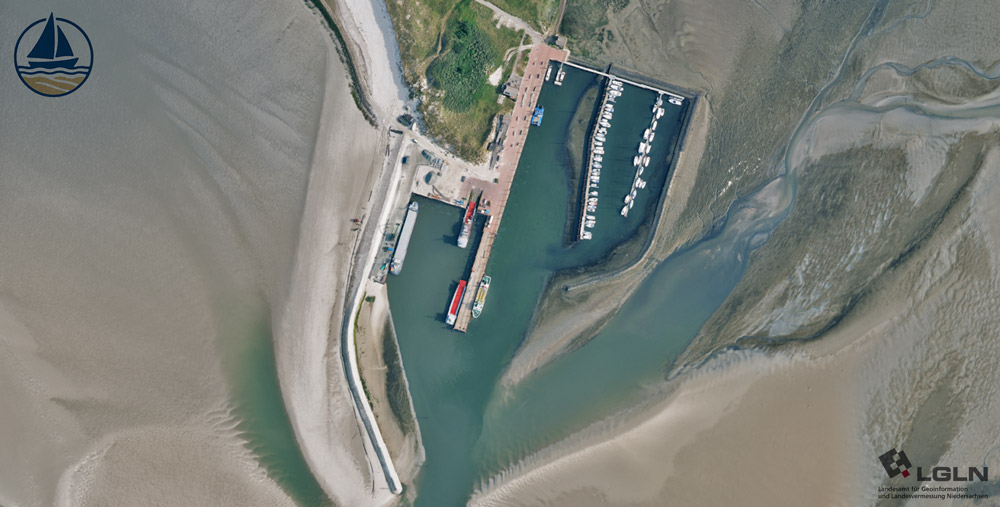 Gäste liegen im vorderen Teil des Hafens; mit dem Hafenmeister abstimmen. Man kann ebenfalls sehr gut südlich der Hafenmole in der Nähe des Priels ankern. Sobald man dort aufschwimmt, hat man auch genügend Wasser, um mit Kurs Süd direkt übers Watt zum Baltrumer Wfw. zu fahren.