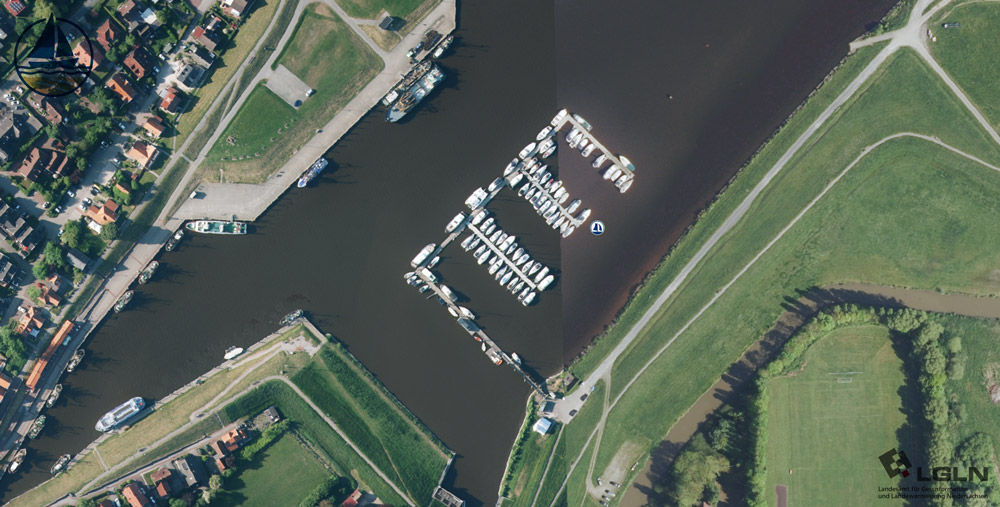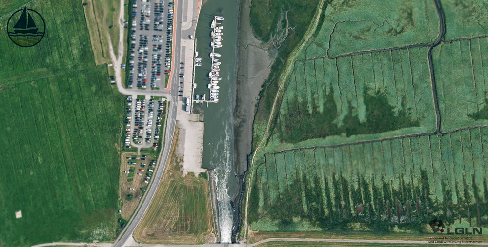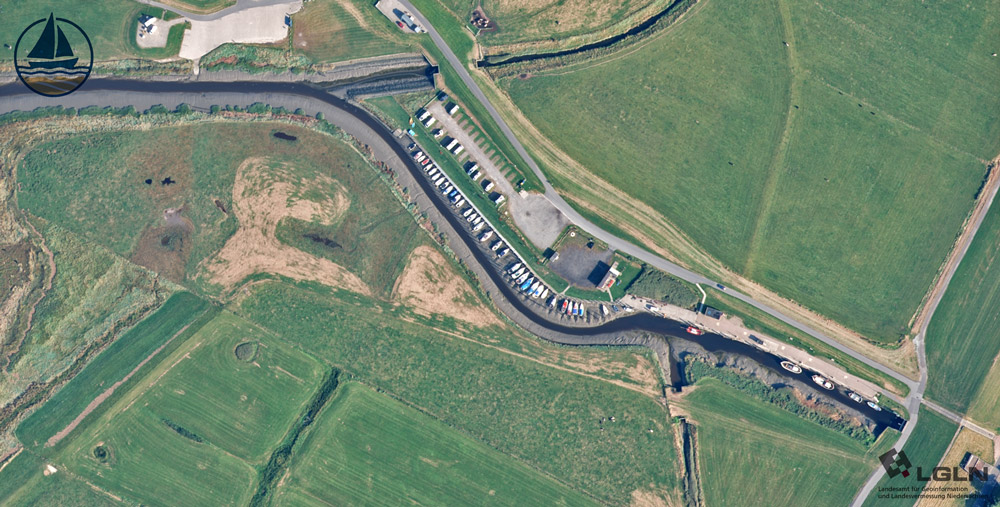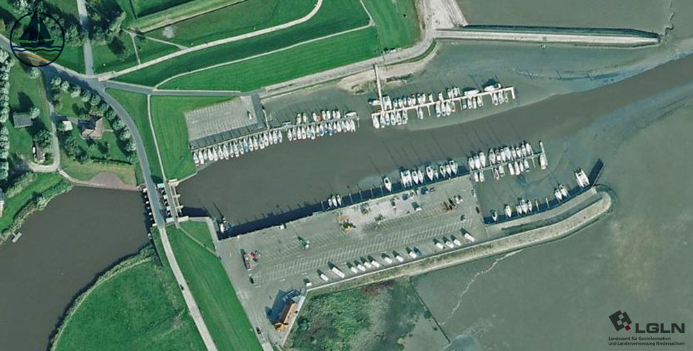 Die Zufahrt von der Osterems geht über den Prickenweg Ley oder die Bantsbalje. Die Schleuse ist groß und schnell, ggf. Warteplatz vor der Schleuse. Anrufkanal 68. Bitte beachten, dass auf dem Weg von der Schleuse bis zum Hafen nicht gestoppt werden darf! Die Vögel könnten sich sonst erschrecken!