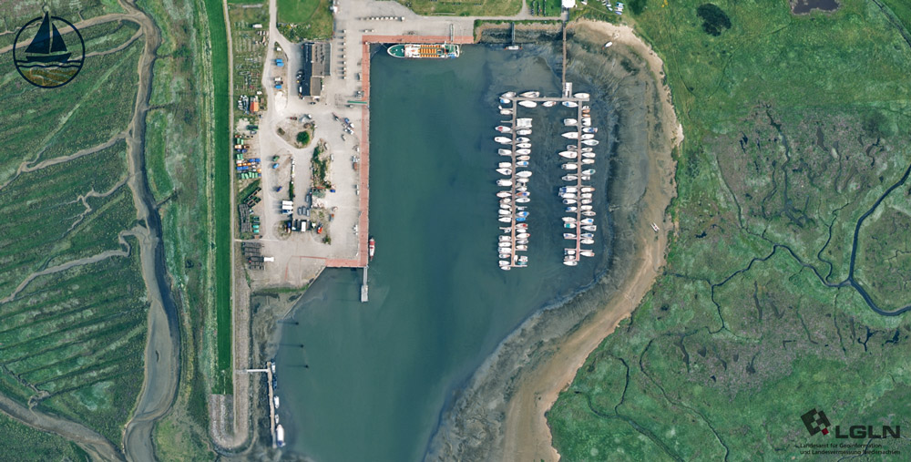 Kleiner gemütlicher Hafen des Nordsee-Yacht-Clubs Neßmersiel, der 3h vor und nach HW für Schiffe bis 10m Länge, 3m Breite und 1,20m Tiefgang zu erreichen ist.